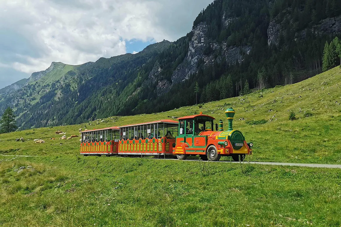 Pro první seznámení s regionem mohou rodiny využít vláček "Tschu-Tschu Bahn", který vás zaveze z Rennwegu do přírodní chráněné oblasti Pöllatal.