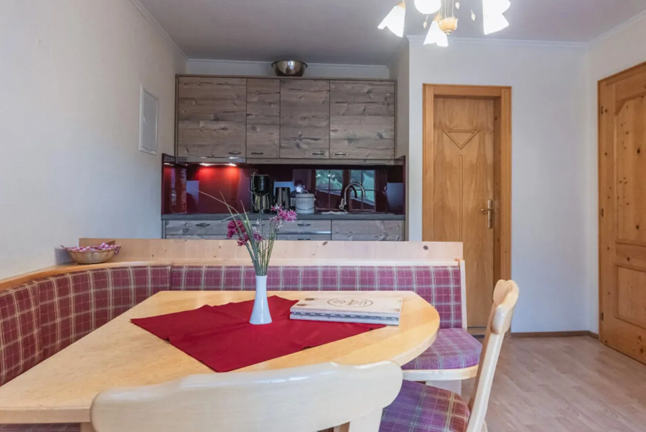 Rekreační apartmán Kolmspitz o rozloze 75 m² nabízí pohodlné zázemí pro 2–4 dospělé a až 4 děti. Součástí je vstupní hala se šatní skříní, ložnice s manželskou postelí, dětský pokoj se dvěma palandami a velký obývací a jídelní kout s otevřeným prostorem pro společné chvíle. O odpočinek se postará infračervená kabina, zatímco dvě koupelny se sprchovým koutem a toaletou zajišťují dostatek soukromí i komfortu. Z balkonu s výhledem na Kolmspitze si hosté mohou vychutnat klidnou atmosféru hor a čerstvý alpský vzduch.