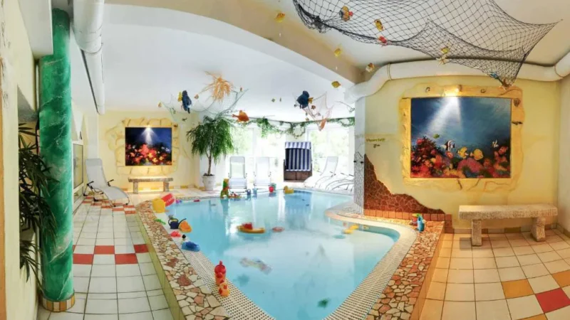 Krytý bazén o rozměrech 10 x 5 metrů nabízí dostatek prostoru pro společné vodní radovánky. Je vybaven skluzavkou a masážními tryskami, díky nimž se zde baví děti i dospělí. Krytý bazén je hostům k dispozici denně od 7:00 do 22:00.