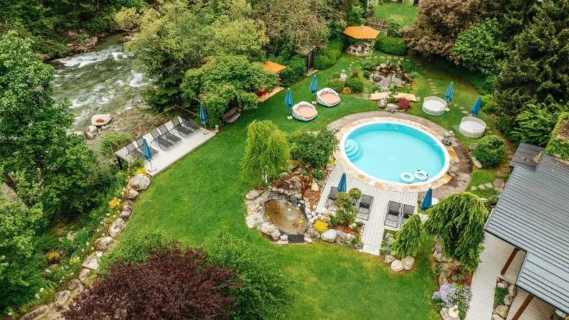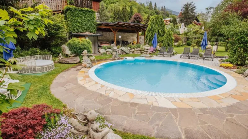 Pro osvěžení na čerstvém vzduchu je připraven vyhřívaný venkovní bazén, který je v provozu od konce května do začátku září – bez ohledu na počasí. Vyhřívání pomocí tepelného čerpadla zaručuje příjemnou teplotu vody, a tak se hosté mohou koupat venku i během chladnějších dnů.