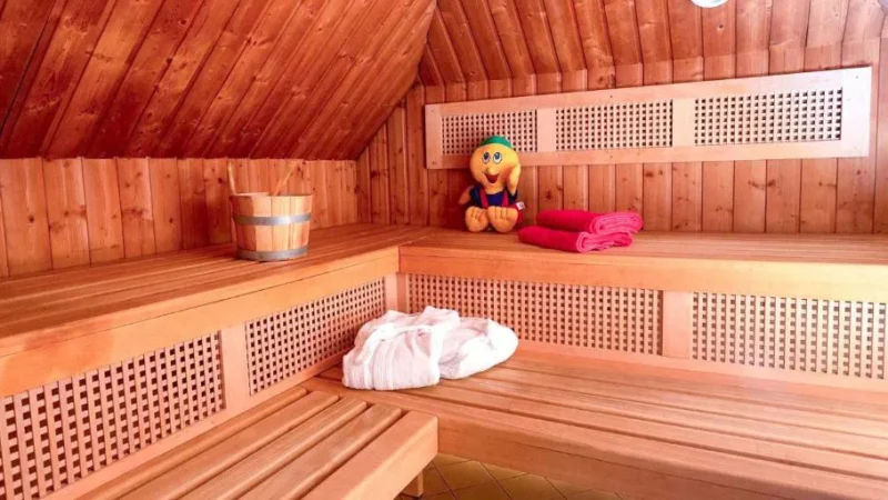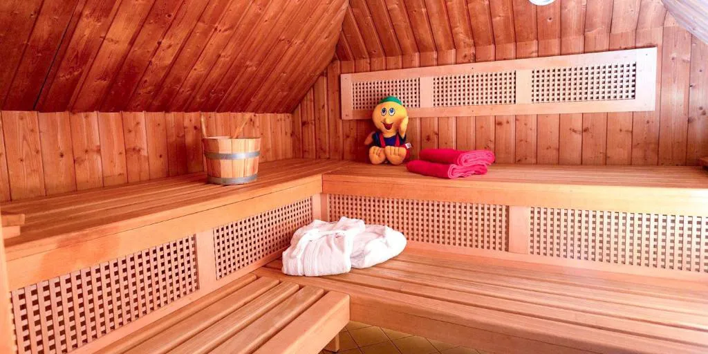 Příjemná saunová zóna nabízí finskou saunu, parní lázeň a infračervenou kabinu. Od 14:00 do 18:00 je přístupná dětem a rodinám, večer do 21:00 je vyhrazena dospělým. K odpočinku slouží relaxační zóna s vodními postelemi, zdravotními lehátky, senným lůžkem a venkovní terasou. Ochlazení zajistí dešťová sprcha a masážní trysky.