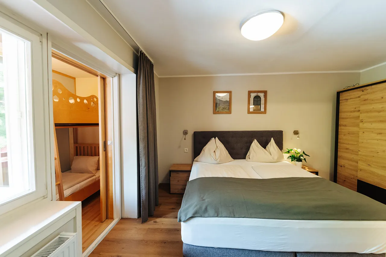 Na výběr jsou rodinné pokoje i prostorná apartmá, která nabízejí dostatek místa pro společné chvíle i soukromí. Promyšlené dispozice a praktické vybavení ocení především rodiny s dětmi.