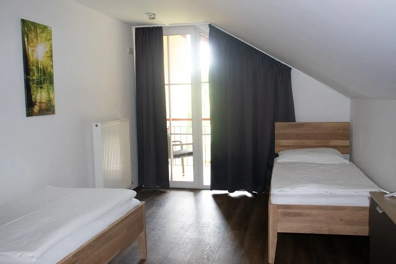 Komfortní rodinný pokoj je ideální pro 3–5 osob a nabízí dostatek prostoru pro společné chvíle i odpočinek. Tři pohodlná lůžka, možnost přistýlky a praktické uspořádání zajišťují pohodlné zázemí pro rodiny s dětmi.