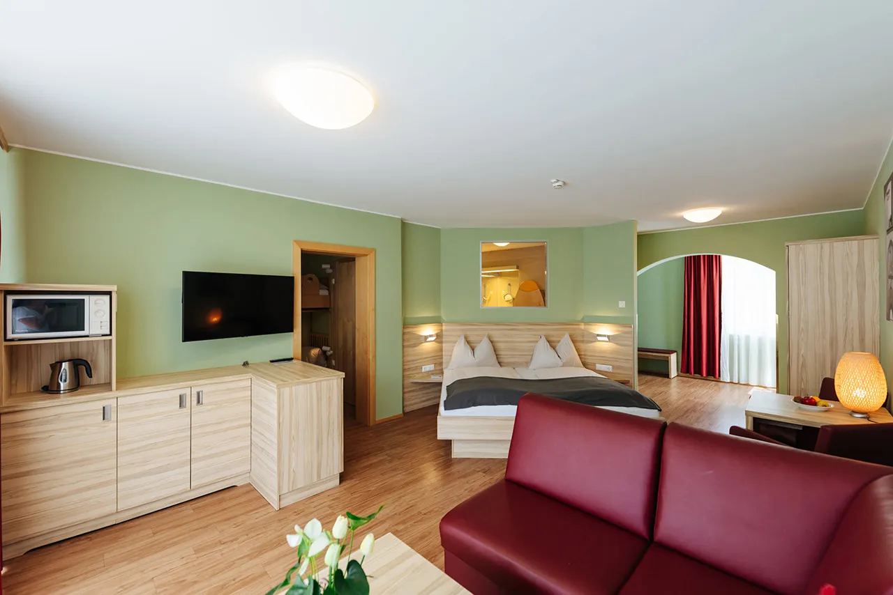 K dispozici jsou různé typy ubytování od dvoulůžkových pokojů až po prostorná apartmá s více ložnicemi, často s balkonem a výhledem na hory nebo okolní přírodu. Praktické vybavení a rodinné prvky zajišťují pohodlný pobyt během letní i zimní dovolené.