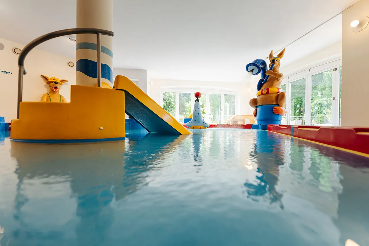 Vodní svět nabízí vnitřní i venkovní vyhřívané bazény, dětský bazén a více než 100 metrů dlouhý tobogán, který potěší zejména malé hosty. Nechybí ani skluzavky a prostor pro hry, kde si děti užijí spoustu zábavy během celého dne.