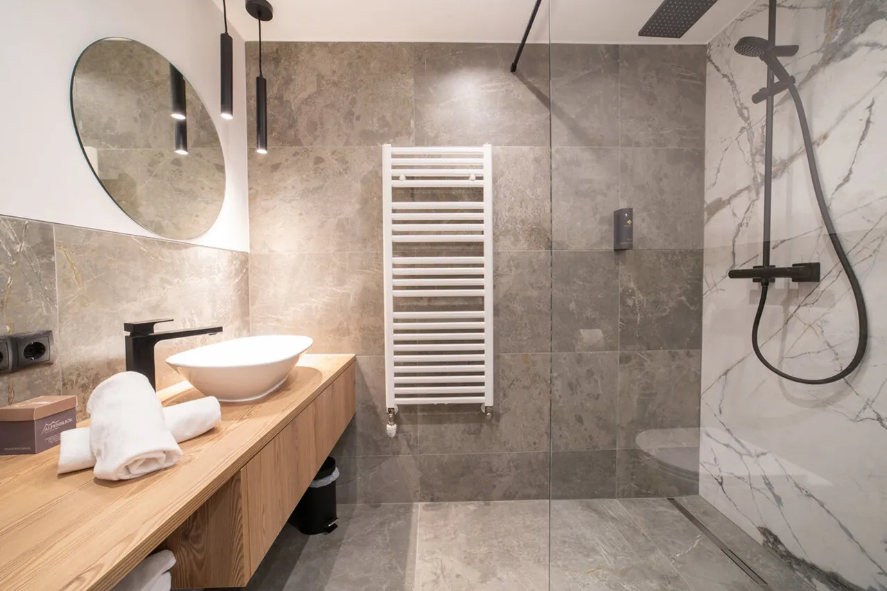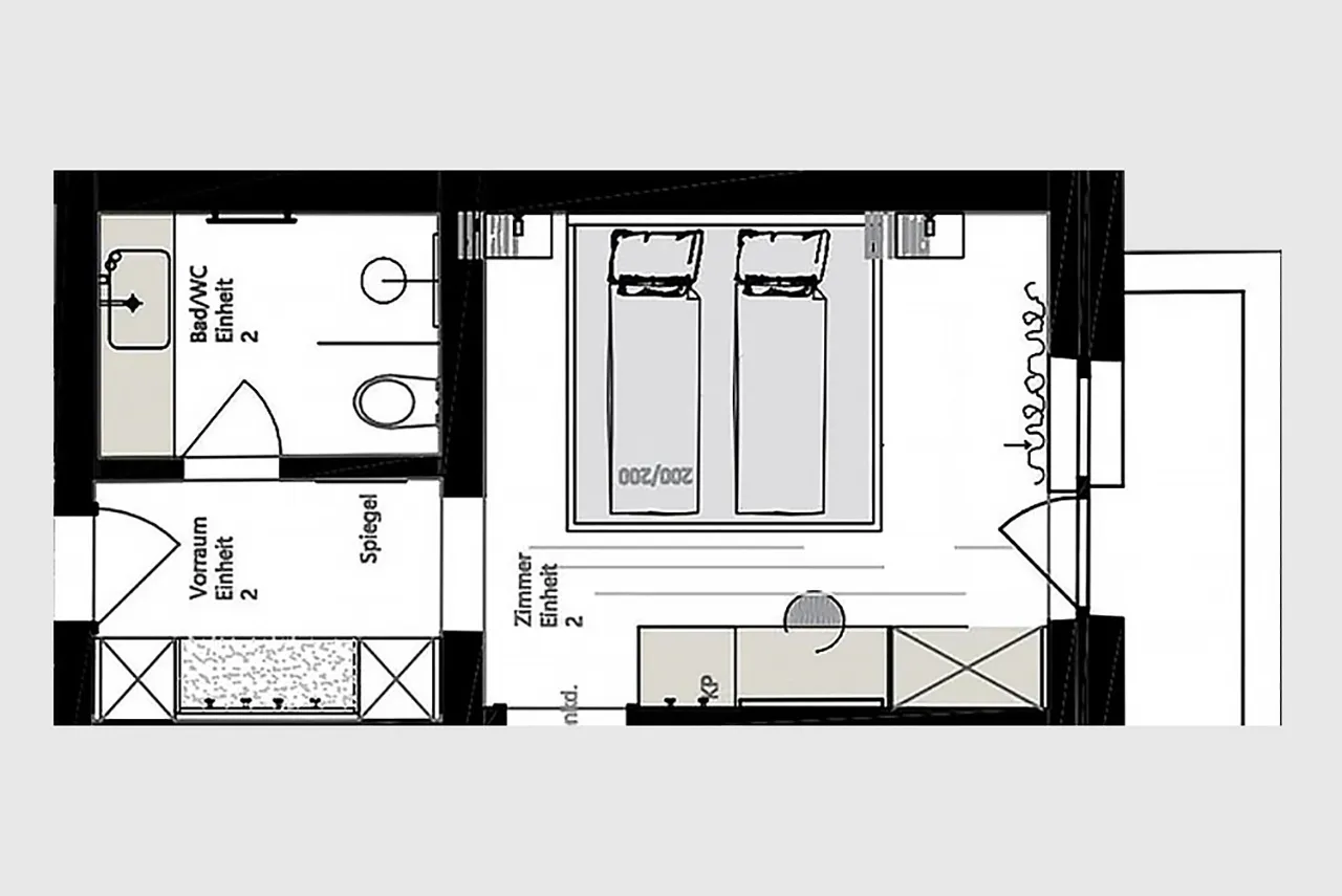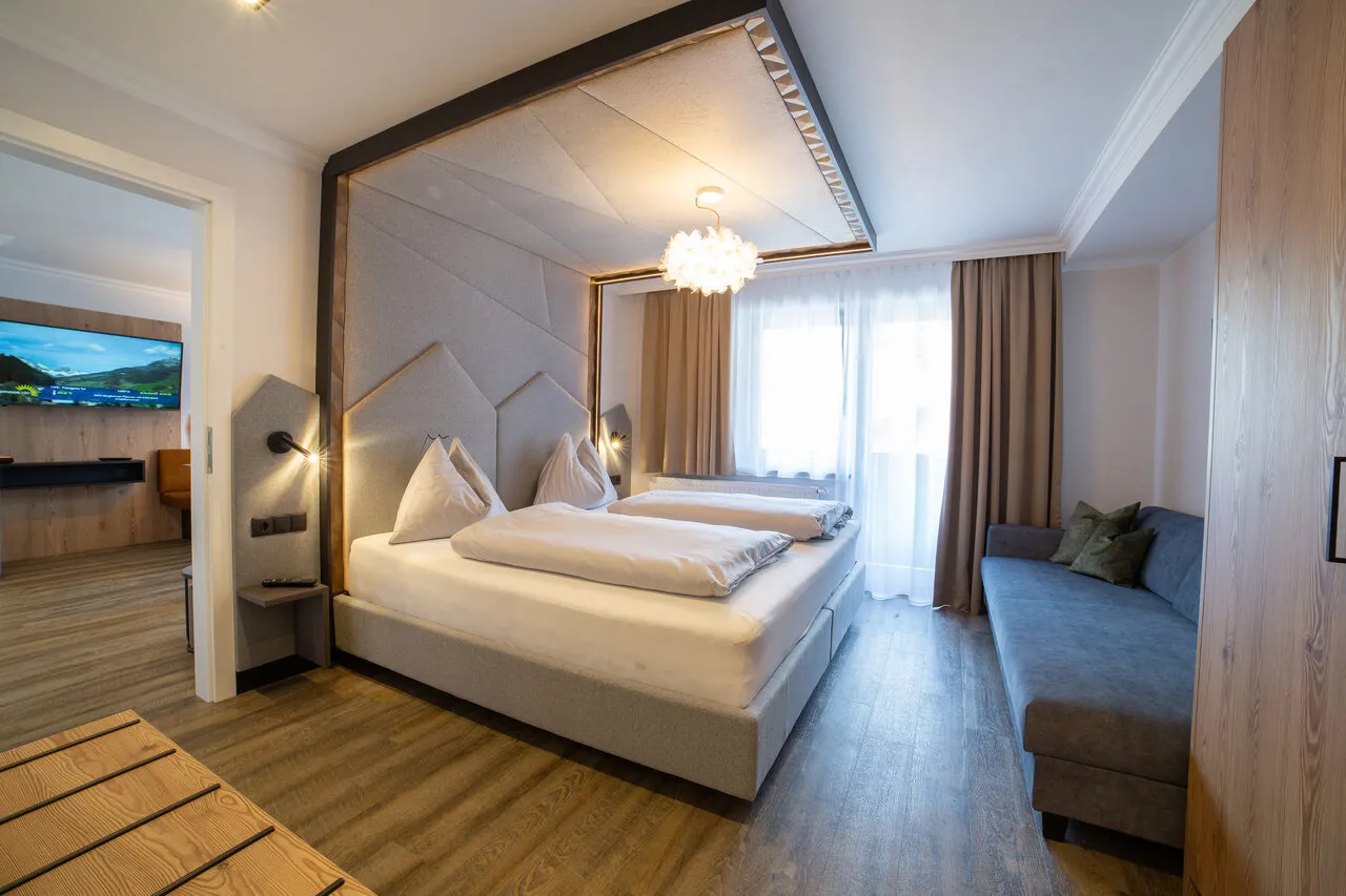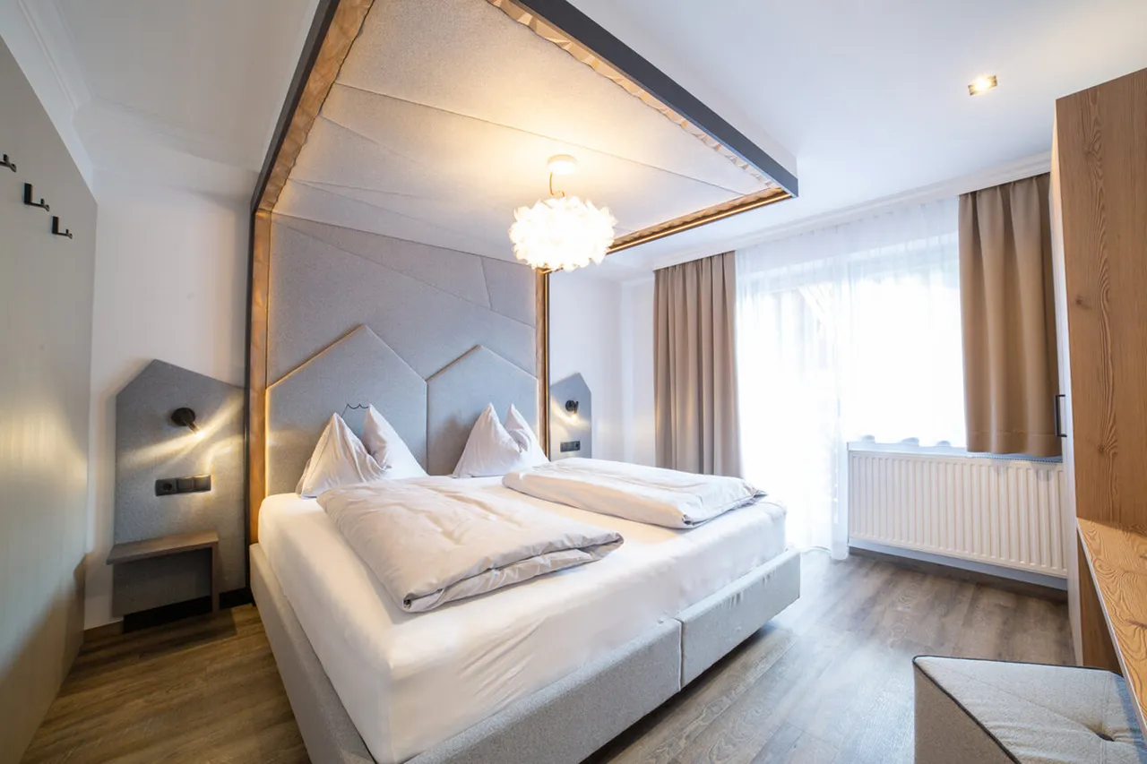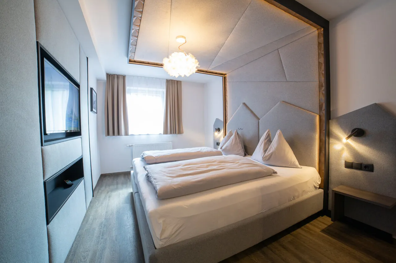 Dvoulůžkový pokoj Alpenstern nabízí komfortní ubytování pro 2 osoby. Světlé barvy a moderní nábytek vytvářejí útulnou a prostornou atmosféru, ideální pro odpočinek a relaxaci.