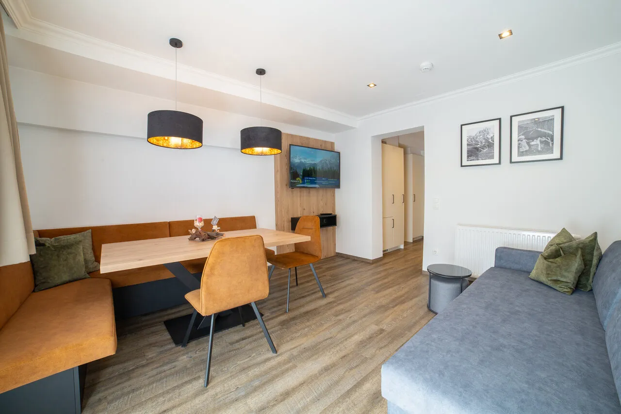 Apartmán Dachstein nabízí komfortní ubytování pro 2–4 osoby. Světlé barvy a moderní vybavení vytvářejí prostornou a útulnou atmosféru, ideální pro relaxaci a pohodlí během pobytu ve Filzmoosu.