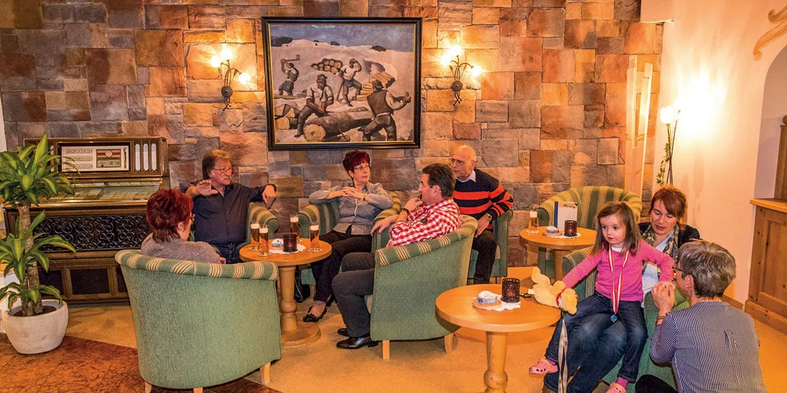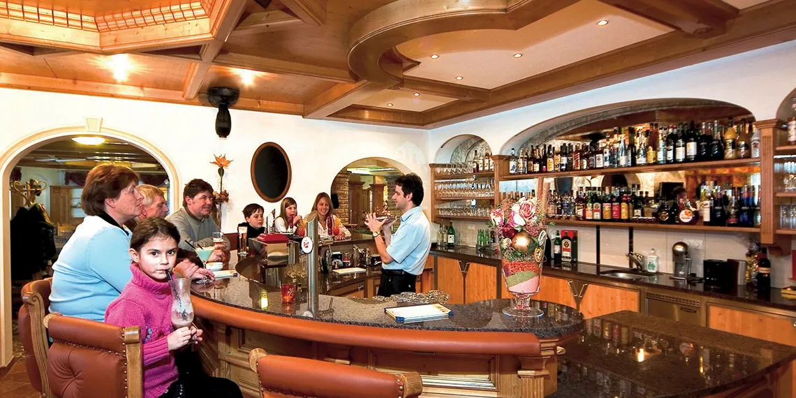 Hotelový bar je živým srdcem hotelu Alpenhof. Hosté zde nacházejí ideální místo pro večerní posezení, přátelské rozhovory a sdílení zážitků u sklenky vína, koktejlu nebo dobře načepovaného piva. Pro ty, kdo preferují klidnější atmosféru, jsou k dispozici útulné salónky Zirbenstube a Saghausstube, kde se snoubí alpský šarm s pohodlím domova.