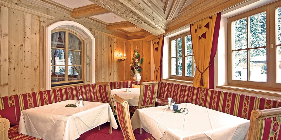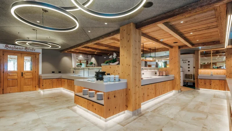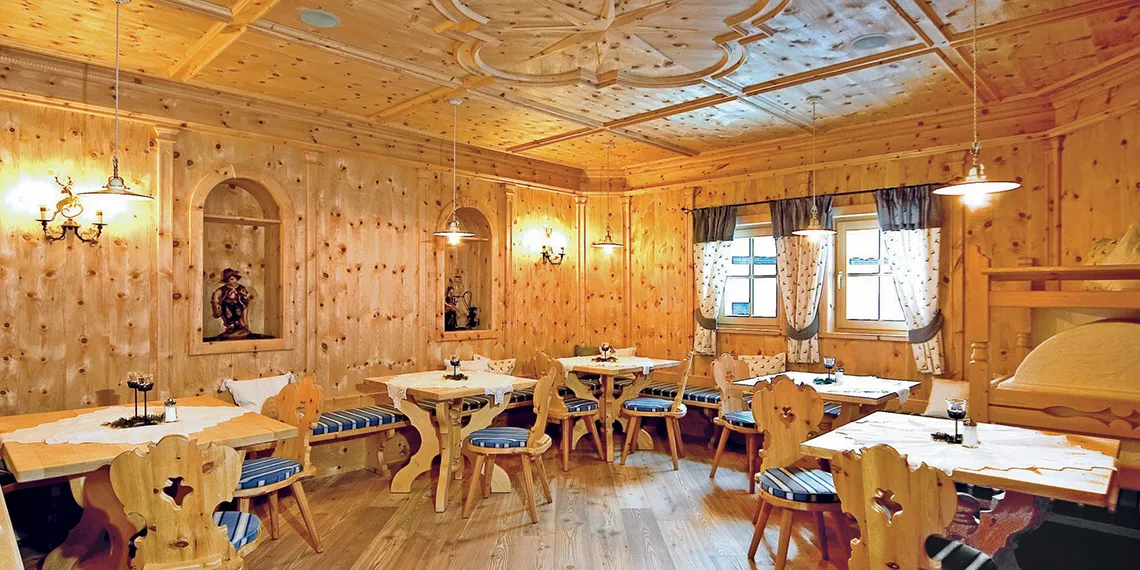 Salónky v hotelu Alpenhof kombinují tradiční alpský styl s moderním komfortem. Útulná Zirbenstube a prostornější Saghausstube jsou vhodné pro pohodové posezení v menším i větším kruhu. Dřevěné prvky, teplo a příjemná atmosféra vytvářejí ideální prostředí pro odpočinek i společenské večery.