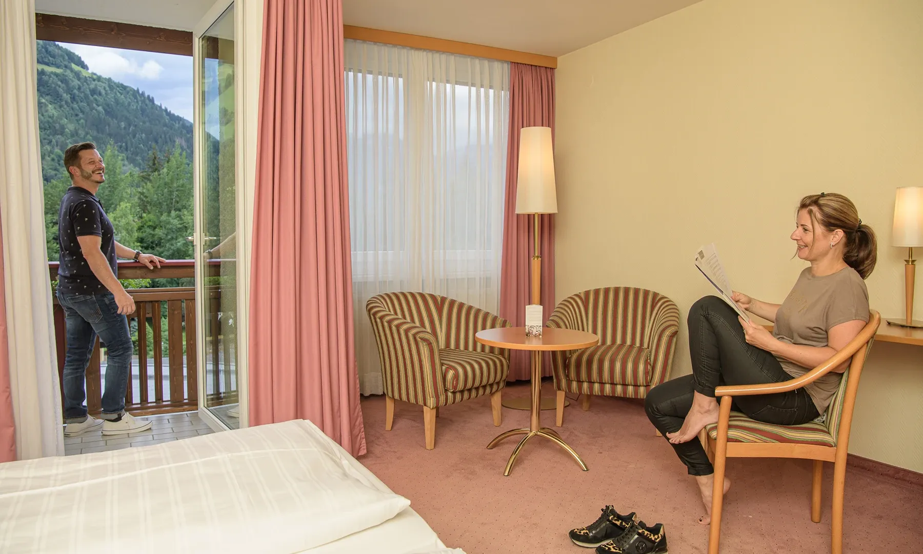 Útulný pokoj vhodný především pro páry, kteří hledají klid a příjemnou atmosféru. Nabízí pohodlnou postel GrandLit a balkon nebo terasu s výhledem na alpskou přírodu. Vše je navrženo tak, aby si hosté mohli naplno vychutnat společné chvíle odpočinku v harmonickém prostředí.