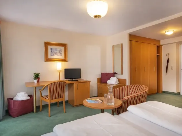 Menší, ale útulný pokoj ideální pro samostatné cestovatele, kteří hledají pohodlí a soukromí. K dispozici je balkon s výhledem do gasteinské přírody, který zpříjemní každý pobyt. Nabízí vše potřebné pro příjemnou dovolenou a představuje praktickou volbu pro ty, kdo chtějí mít klidné zázemí v horách bez zbytečných kompromisů.