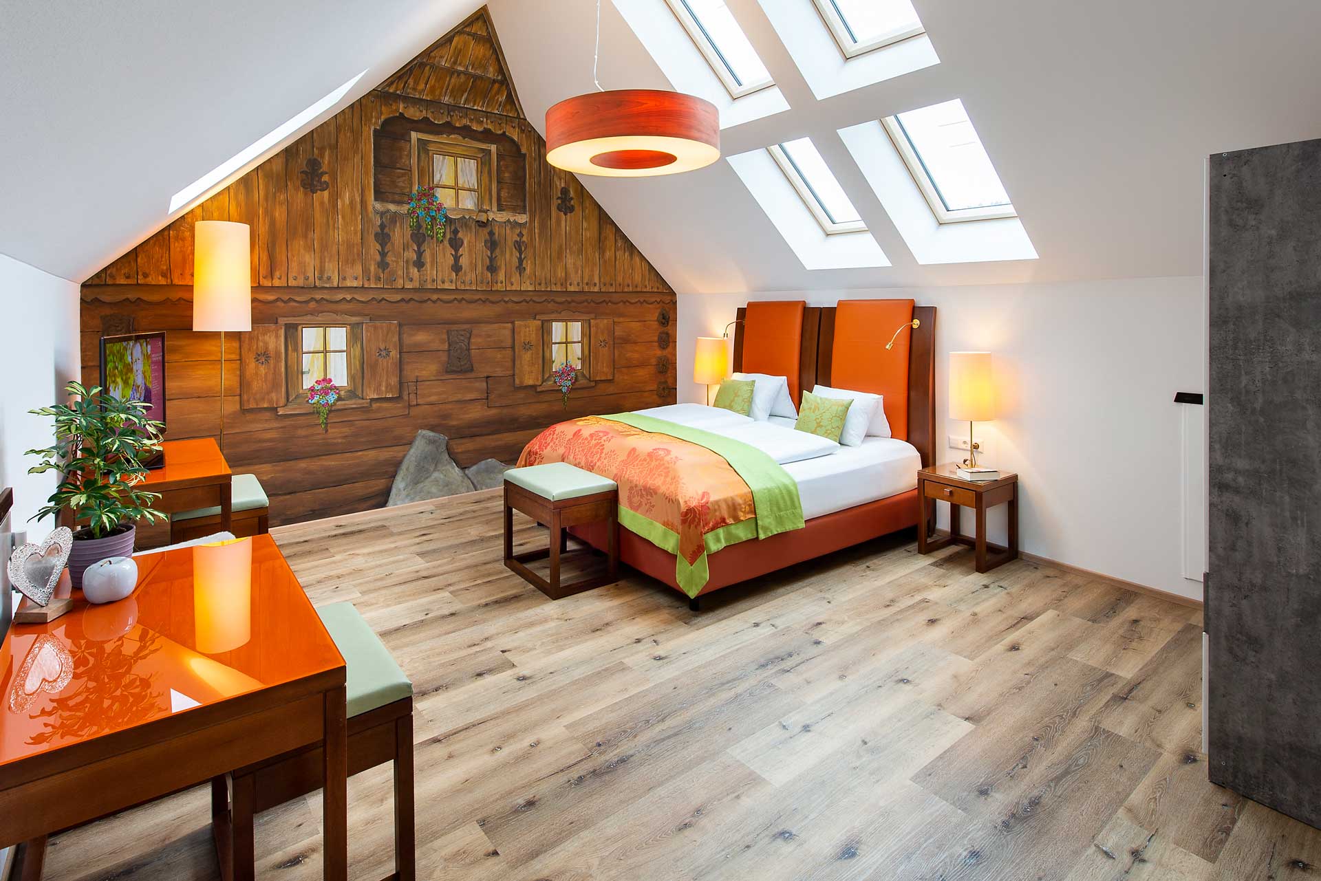 Láskyplně zařízený hotel zajišťuje útulnou a rodinnou atmosféru. Wellness s finskou borovou saunou, sanáriem a infrakabinou nabízí relaxaci po aktivním dni.