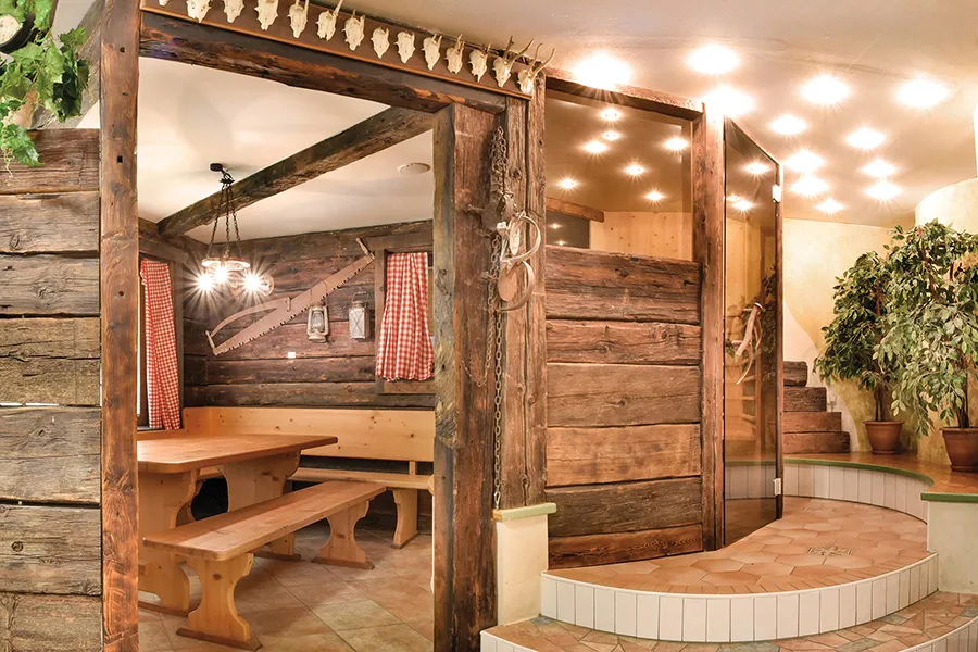 Součástí zázemí je moderní wellness o rozloze 70 m², které propojuje relaxační atmosféru, komfortní vybavení a příjemné prostředí inspirované tradičním alpským stylem.