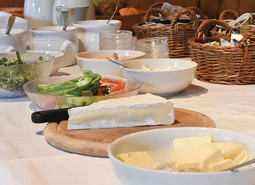 Každé ráno je připraven bohatý snídaňový bufet s domácími specialitami, džemy, müsli, pomazánkami a dalšími čerstvými produkty pro ideální start do nového dne. Součástí místní gastronomie jsou také pokrmy inspirované bylinkami, které dodávají menu jedinečný charakter a autentickou chuť.