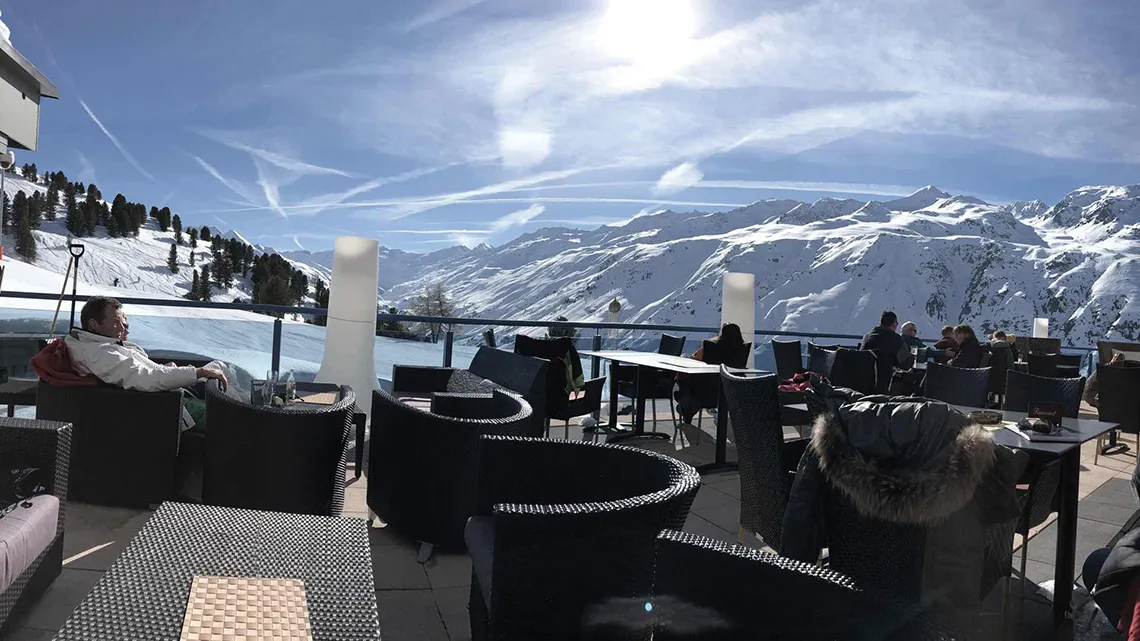 Ve výšce 2.150 metrů čekají dechberoucí výhledy na tyrolské a Ötztalské hory, klid bez ruchu aut a v jarních měsících i pohodová lounge hudba. Sluneční terasa je tak dokonalou zastávkou pro chvíle relaxu během dne – ať už v tričku na jaře, nebo po dni plném oblouků na svahu.