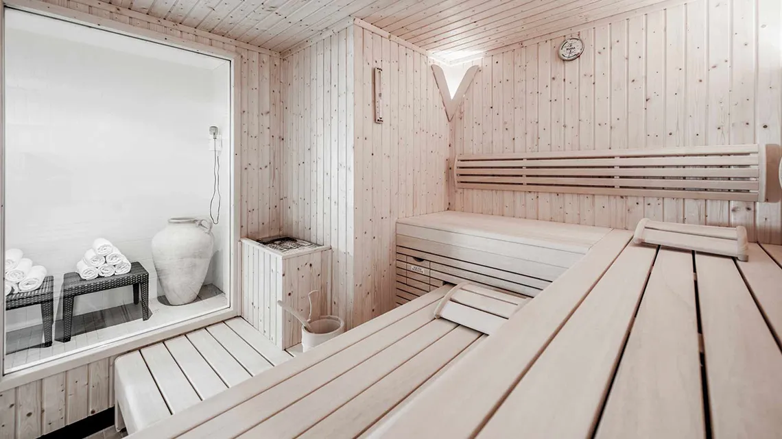 Hosté mohou vybírat z finské sauny, biosauny, bylinné sauny, infračervené kabiny a římské lázně.