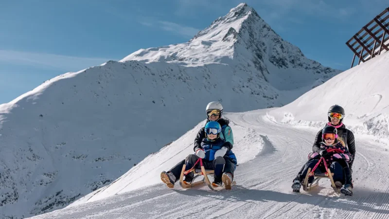 Sníh, smích a rychlý sjezd dolů do údolí – tak vypadá rodinné sáňkování v Ötztalu.