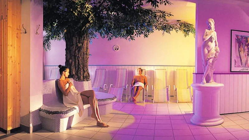 Součástí wellness zóny je barevná světelná parní lázeň, biosauna s bylinnou vůní, finská sauna, eukalyptová parní lázeň a infra kabina. Po saunování mohou hosté odpočívat na vyhřívaných lavicích a lehátkách s klidovou atmosférou.