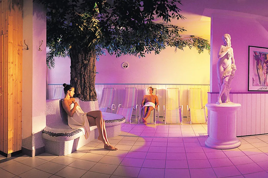 Součástí wellness areálu je saunový svět s barevnou světelnou parní lázní, biosaunou, bylinkovou koupelí a eukalyptovou parní lázní, doplněný o dva kryté bazény. Pro ještě hlubší relaxaci jsou k dispozici také masáže a kosmetické procedury, které dopřejí tělu i mysli zaslouženou péči. Osušky a ručníky jsou k dispozici zdarma, župany lze zapůjčit za malý poplatek.