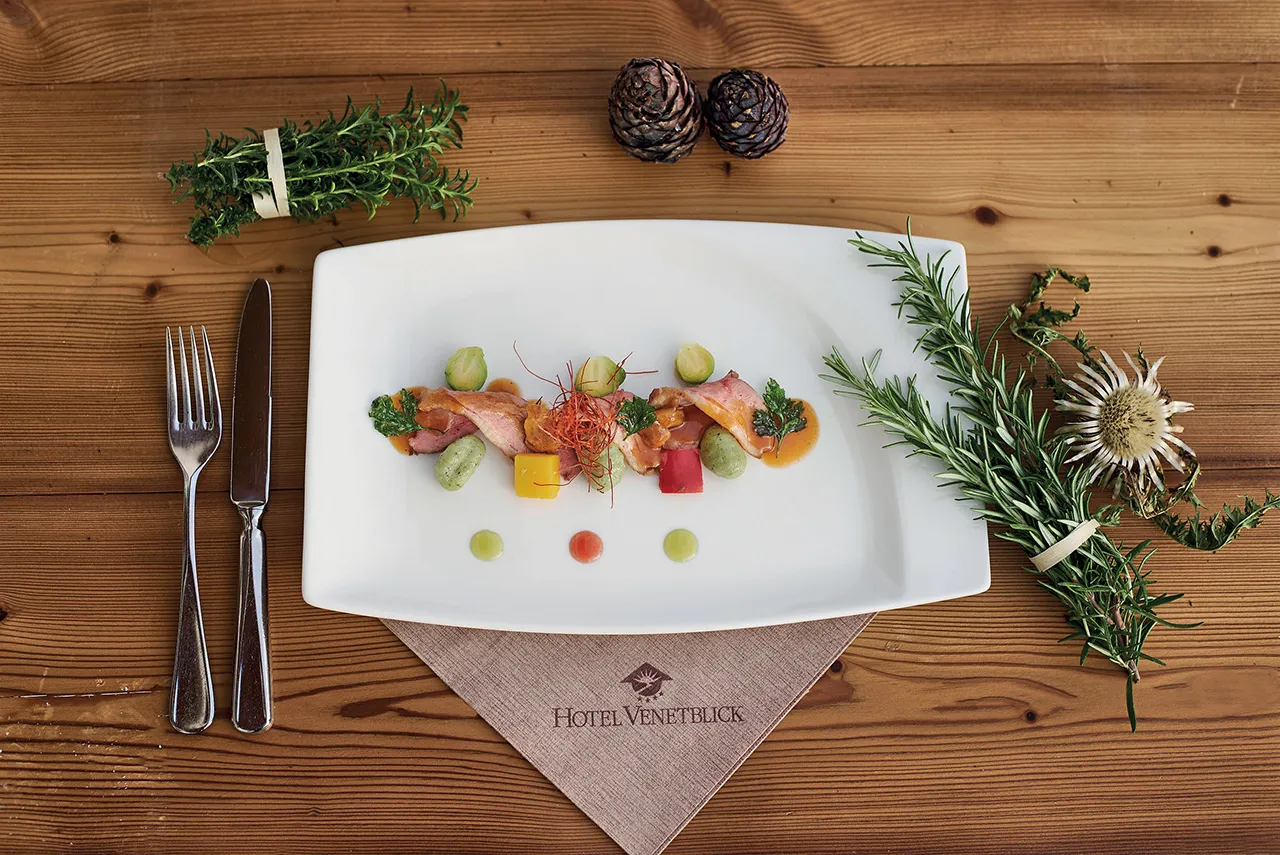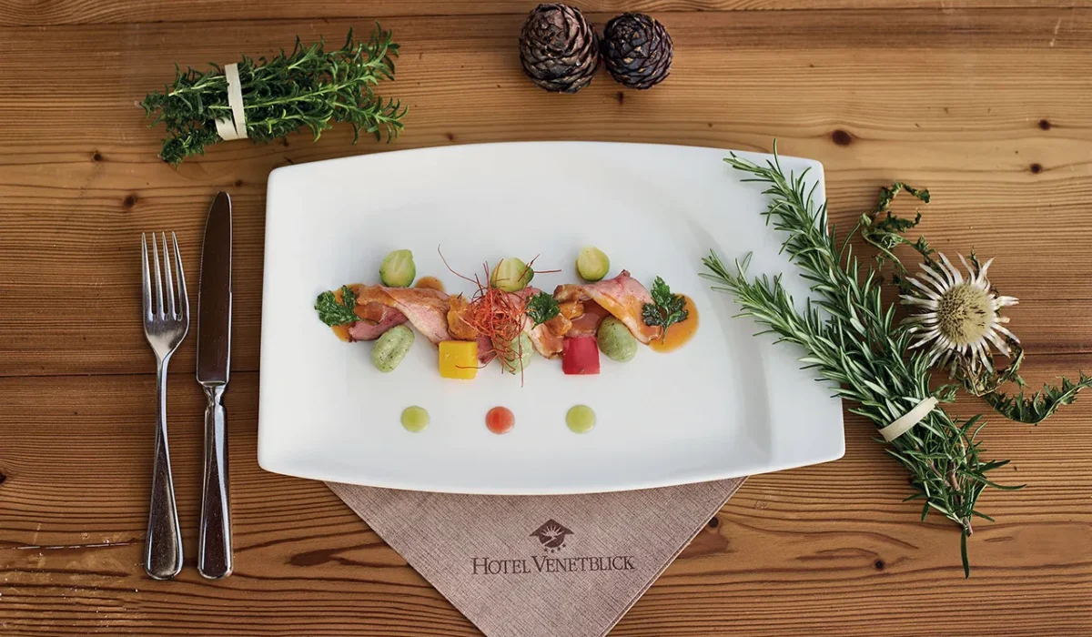 V hotelu Venetblick hosté ochutnají kuchyni, která spojuje poctivost, kreativitu a regionální tradice. Mladý tým připravuje jídla s vášní a důrazem na čerstvost, přičemž vychází z tyrolských receptů i mezinárodních specialit. Výsledkem je nekomplikovaná, chutná a autentická kuchyně, která potěší každého gurmána.
