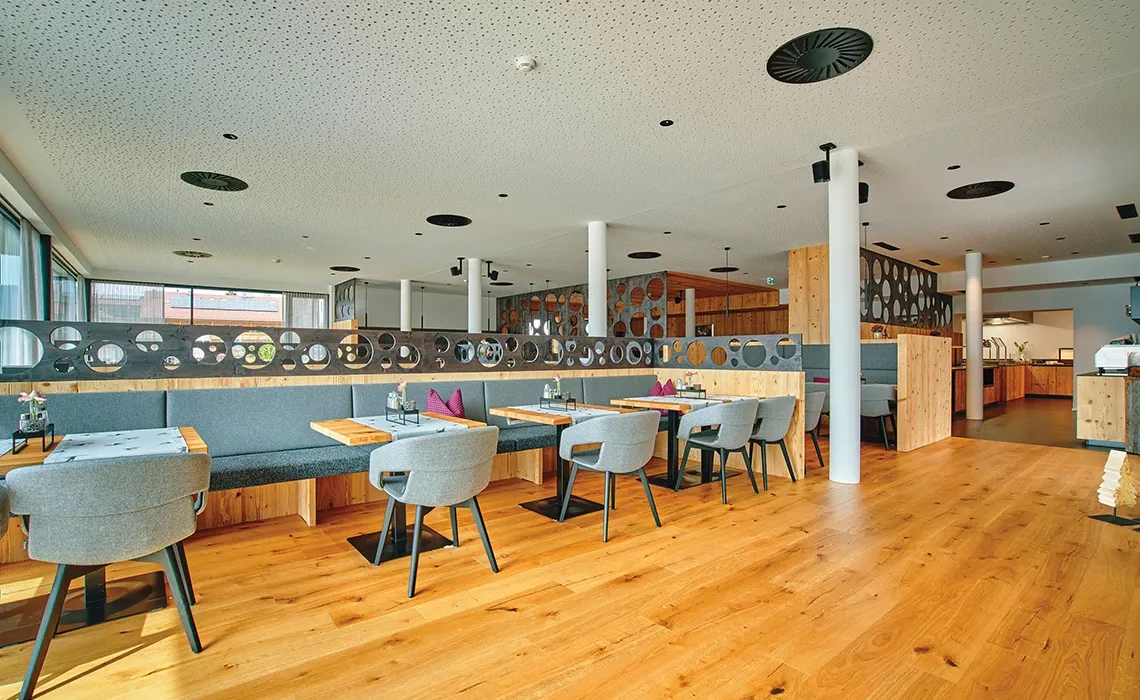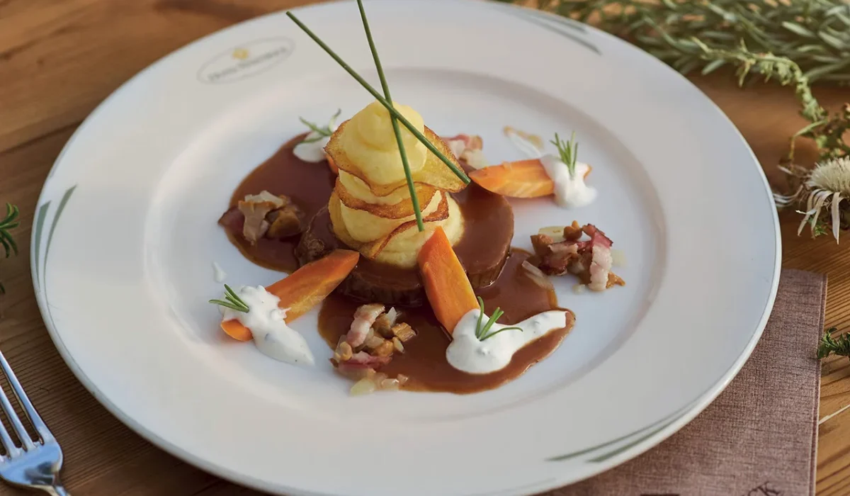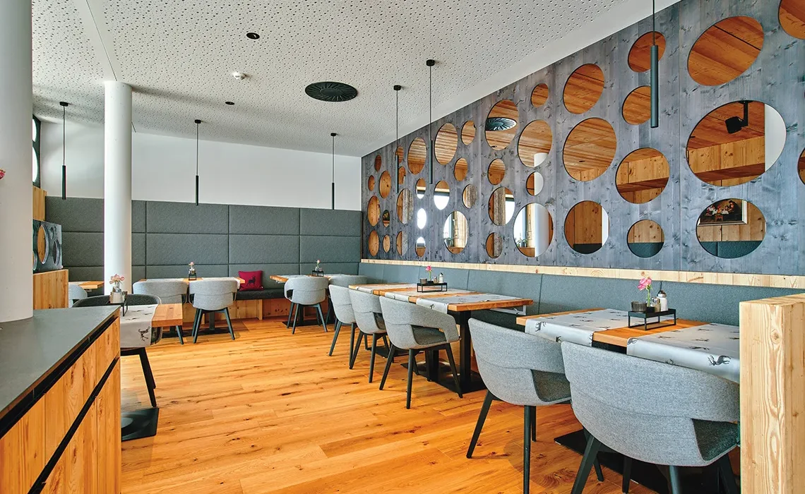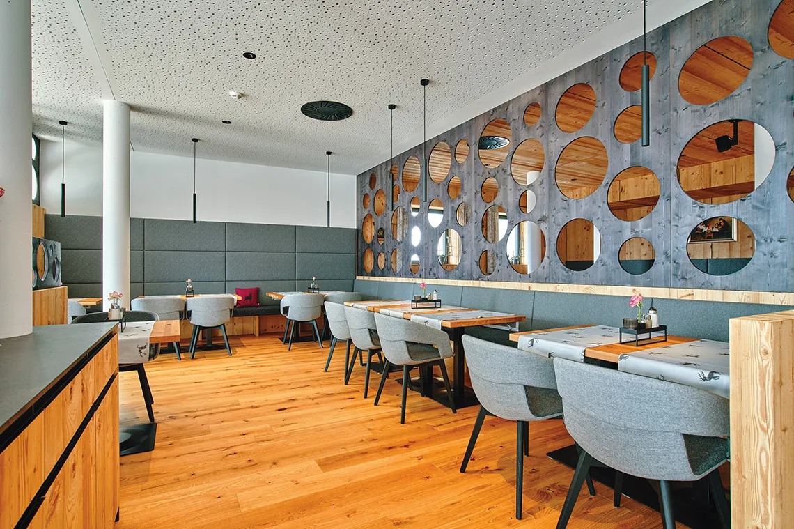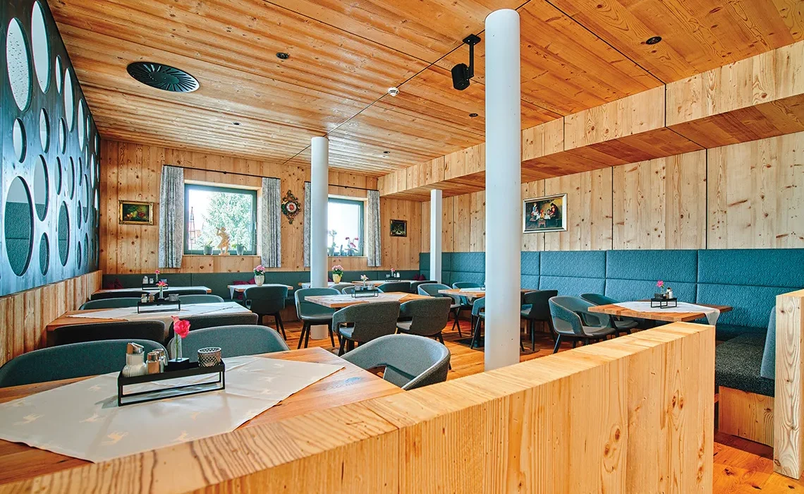 O dokonalý servis se stará šéfkuchařka Carina Schöpf se svým týmem. S vlídností, šarmem a citem pro detail zajišťují, aby se každý host cítil vítán. Pokrmy se podávají ve světlém sále, útulné jídelně s výhledem na hory i na slunečné terase. Neformální, ale vždy pozorná atmosféra vytváří pocit sounáležitosti a opravdového požitku – takového, který vychází z jednoduchosti a blízkosti přírody.