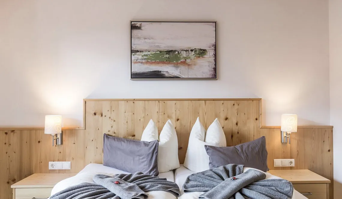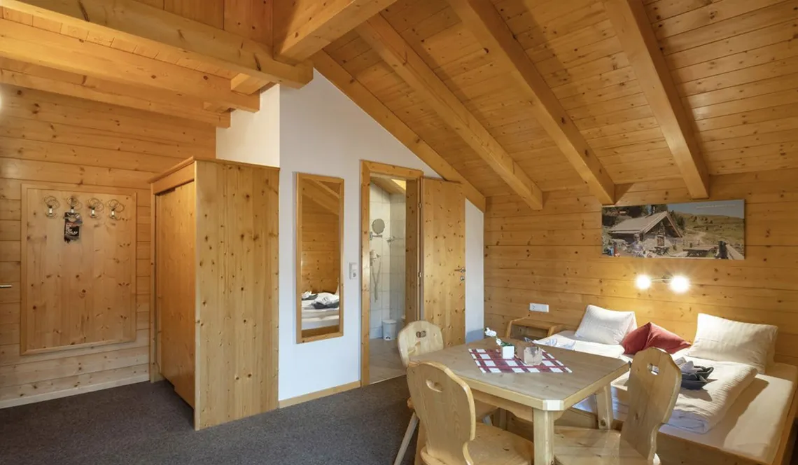 Ano, některé typy pokojů (Zirbenzimmer) využívají švýcarskou borovici, která má pozitivní vliv na spánek a celkovou pohodu.