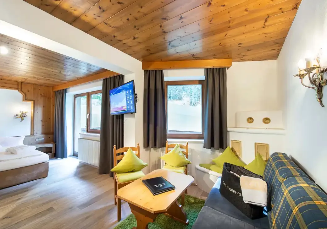 Dvoulůžkové pokoje Gasteigerhofu nabízí intimní a útulné prostředí pro pár, který hledá klid a relaxaci. Každý pokoj je zařízen s typickým alpským šarmem a disponuje prostornou terasou nebo balkonem, který umožňuje vychutnat si čerstvý horský vzduch a výhledy na Stubaiské údolí. Žádný pokoj není stejný, takže každý pobyt je jedinečný.