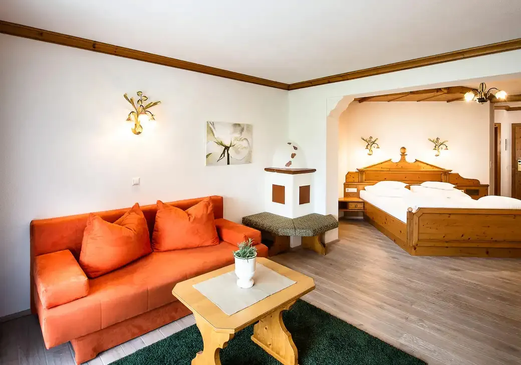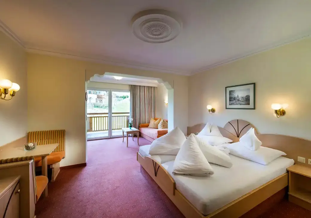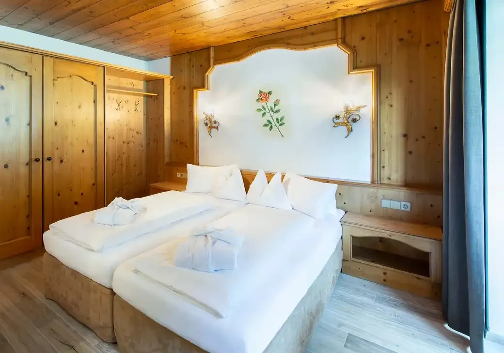 Pokoje a apartmá poskytují ideální místo k odpočinku po dni stráveném na lyžích, při horských túrách nebo při objevování malebného Stubaiského údolí. Komfortní postele a příjemný design zajišťují kvalitní spánek, zatímco balkon nabízí prostor pro relaxaci a sledování nádherné přírody. Čtyři různé kategorie pokojů umožňují najít perfektní útočiště pro páry, rodiny i hosty hledající klid a intimitu – každý pobyt se tak stává nezapomenutelným zážitkem.