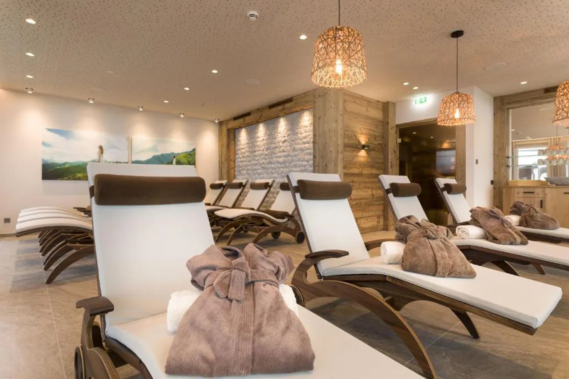 Čeká vás relaxační zóna s pohodlnými lehátky a možností občerstvení, stejně jako slunečná terasa s dechberoucími výhledy na alpské vrcholy. Co může být příjemnější než uvolnit unavené svaly po dni lyžování, horské túře nebo cyklistickém výletu?